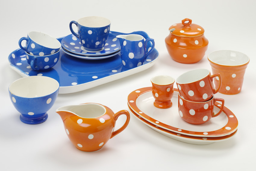 Title | 2 vleesschaaltjes, melkkan, suikerpot met deksel, beker |