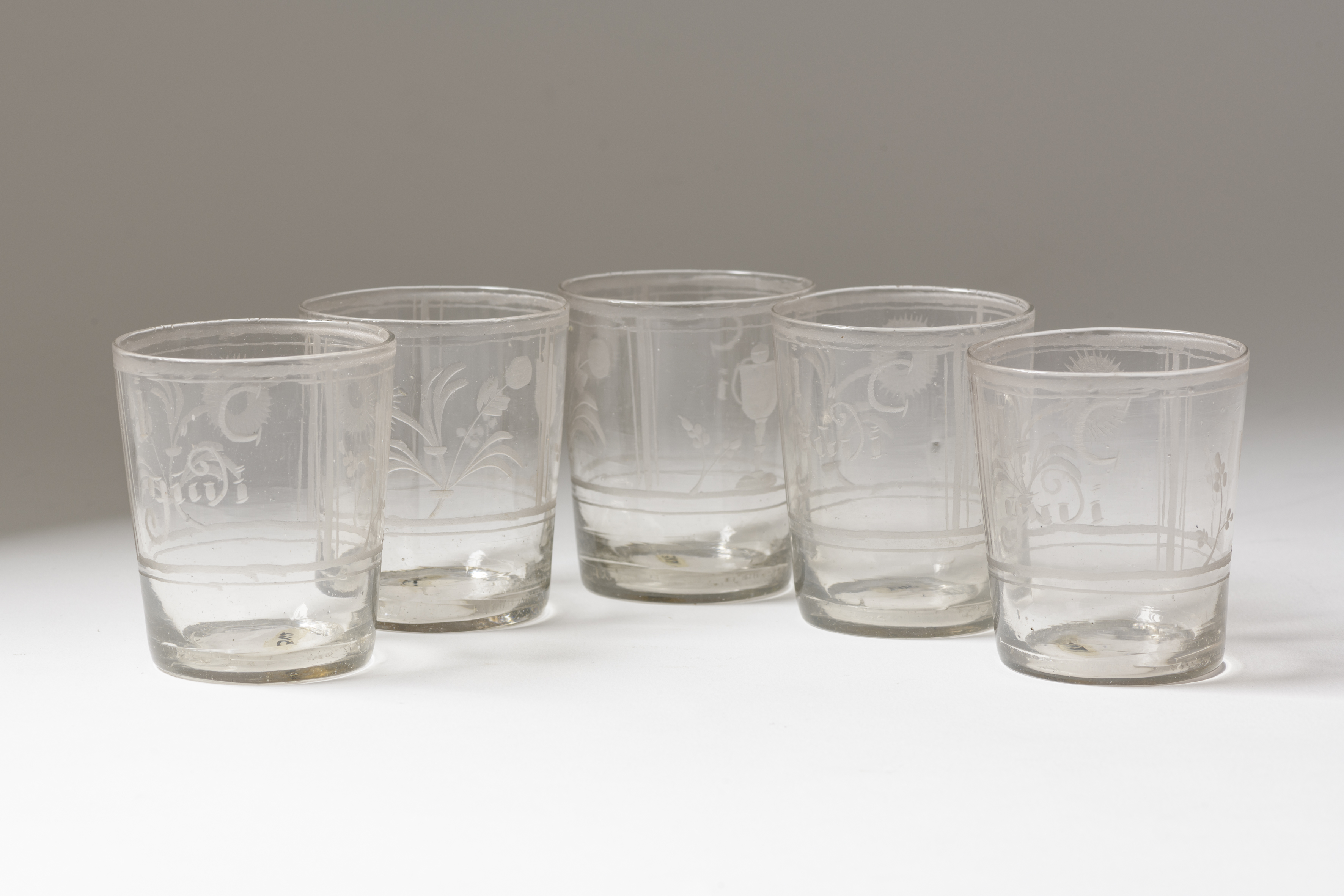 Title | Vijf drinkglazen met bloemetjesdecor |