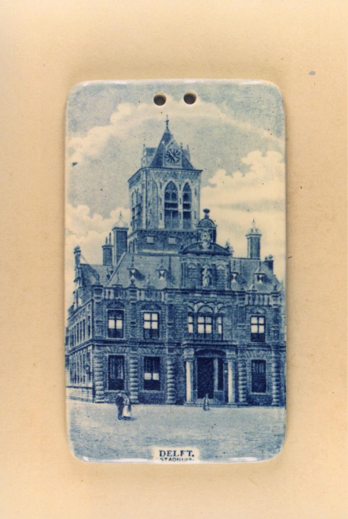 2 Wandtegels waarop: DELFT STADHUIS