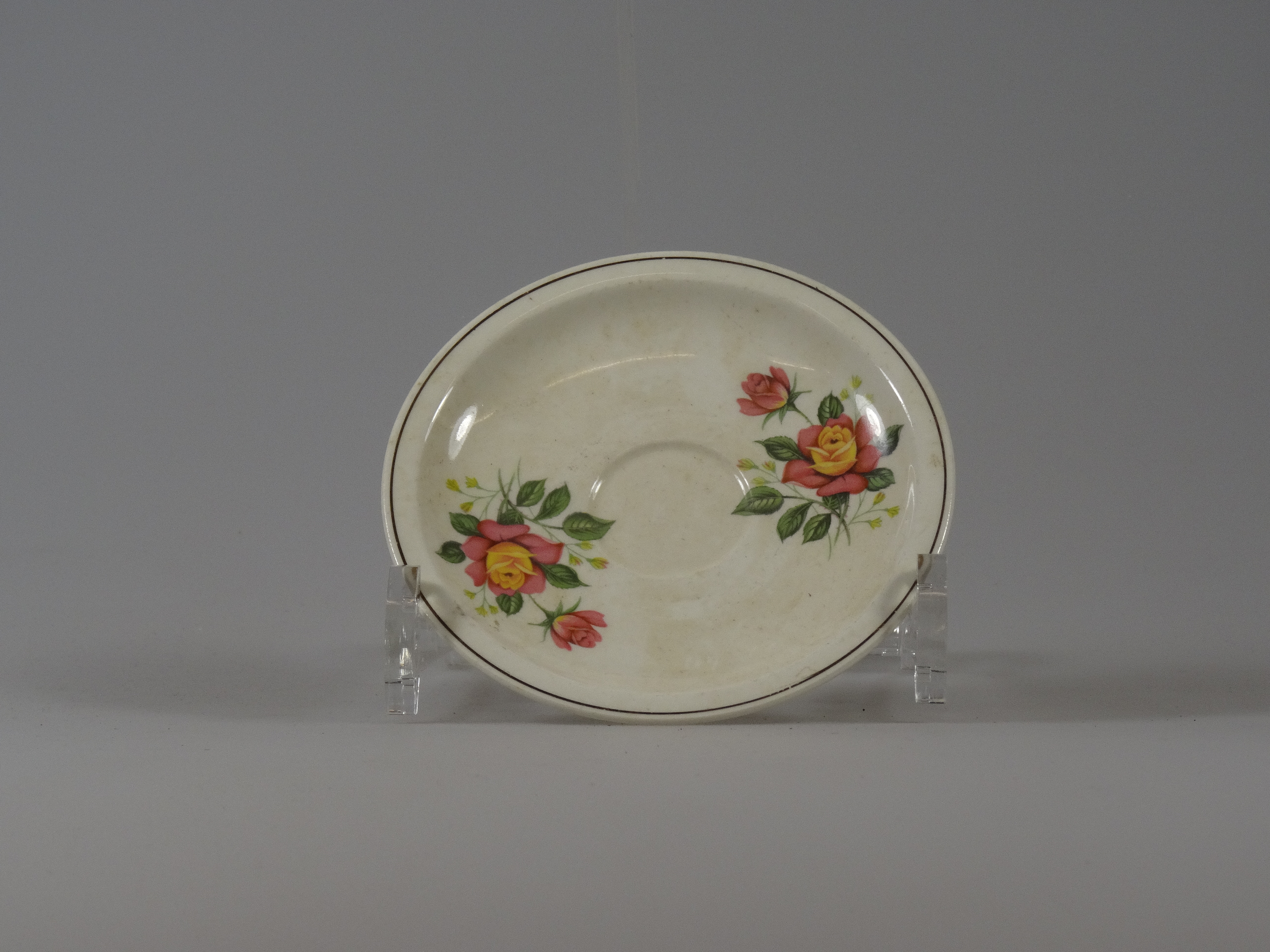 Titel | Schotel van mokkakopje met twee rozen |