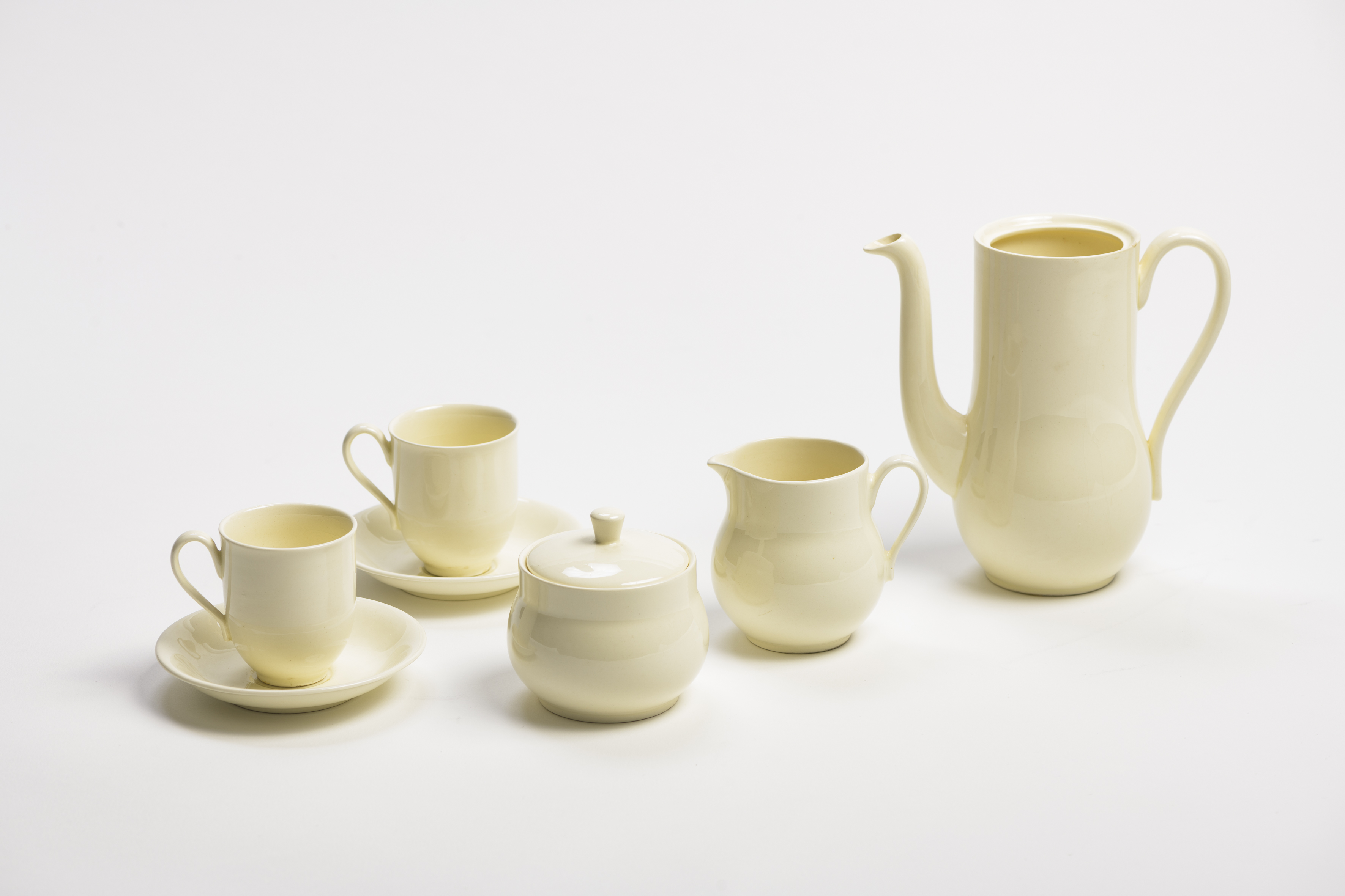 Titel | Mokkaservies: mokkakan met deksel, suikerpot met deksel, melkkan, oorkop met schotel |