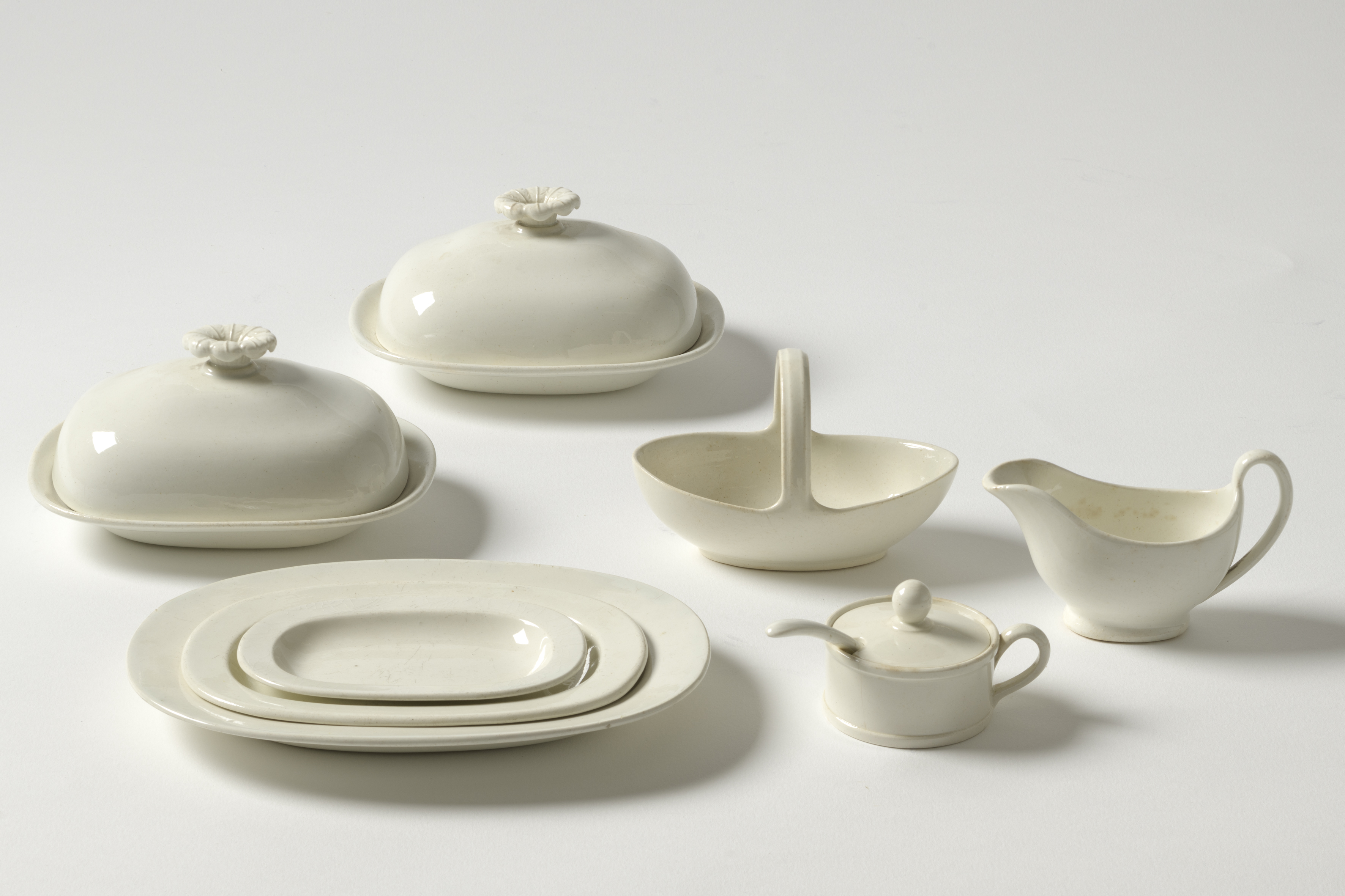 Titel | Onderdelen van kinderservies bestaande uit ; 2 dekschaaltjes, 3 vleesschaaltjes van verschillende afmetingen, een sauskom, een mosterdbakje met lepeltje, een bonbonmandje (teken X) |