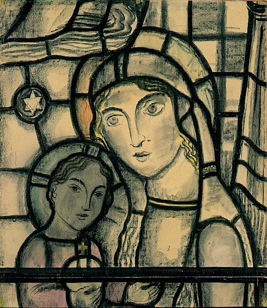 Titel | Ontwerp voor een glas in lood raam voor de Sint Jozef kerk te Broekhem, Valkenburg, in twee delen ; Madonna en engel; engel |