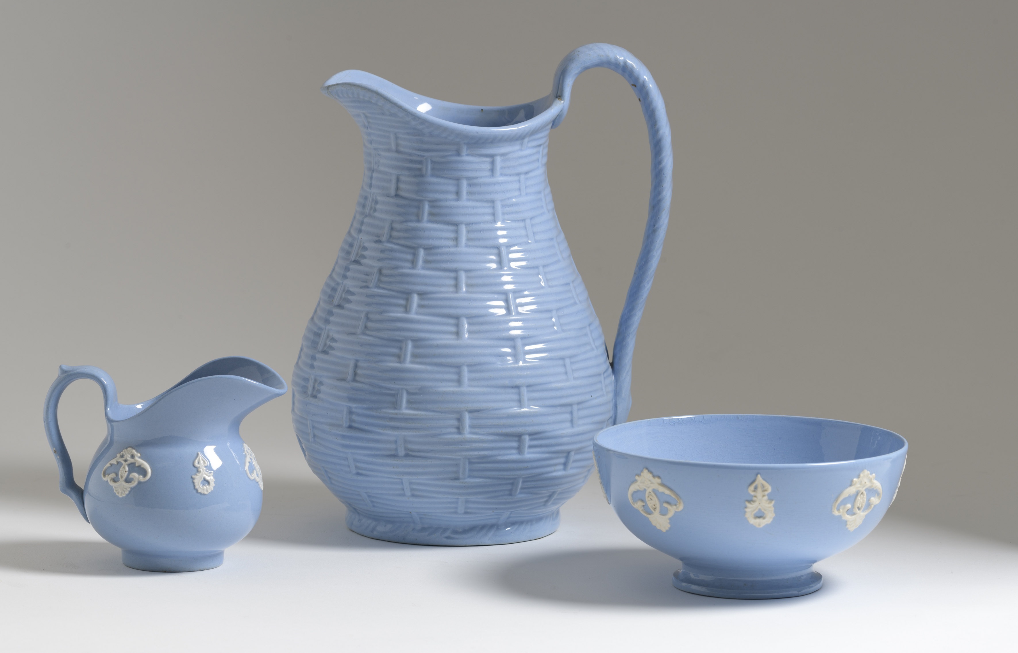 Afmetingen | Hoogte: 12 cm (suikerpot) Hoogte: 11 cm (melkkan) Diameter: 16,5 cm (vingerkom) Hoogte: 27 cm (lampetkan) |