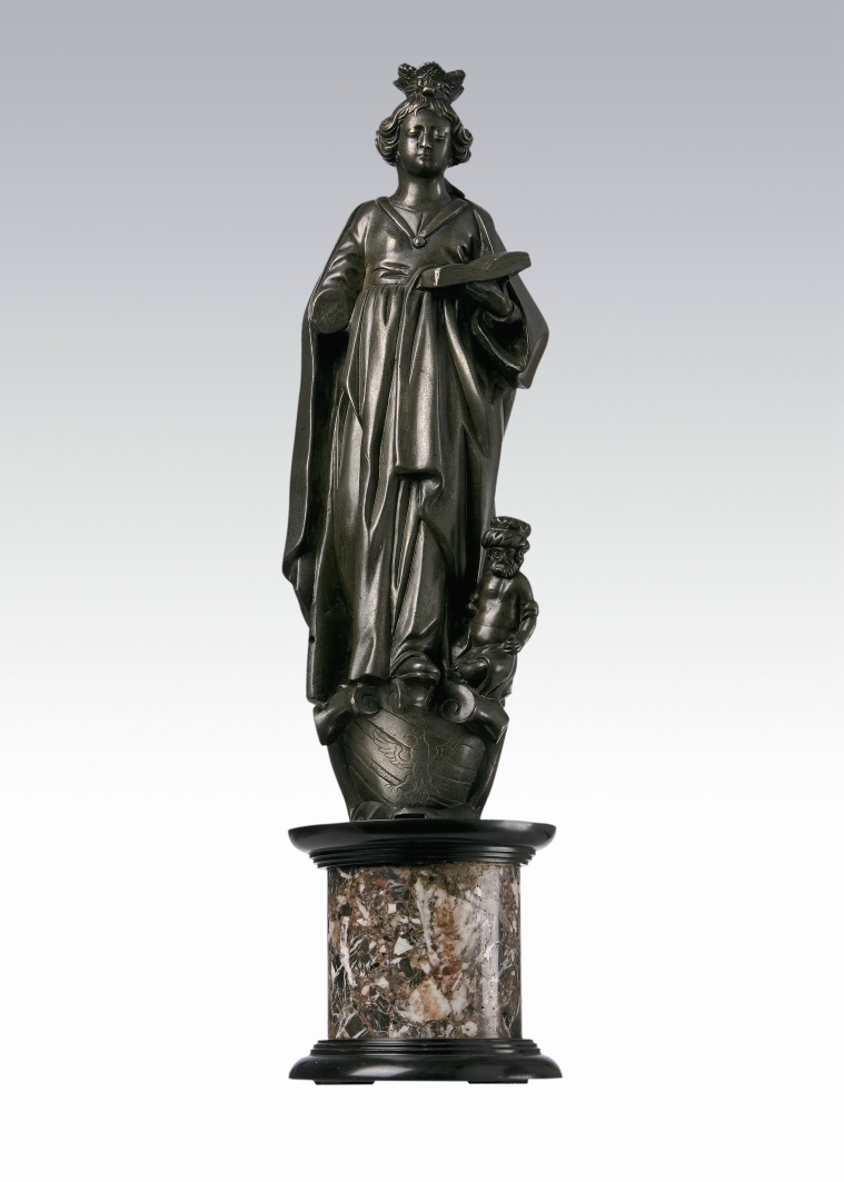 Afmetingen | Hoogte: 48,5 cm (geheel) Breedte: 15,5 cm (geheel) Gewicht: 11 kg (beeld) Gewicht: 5,2 kg (sokkel) |