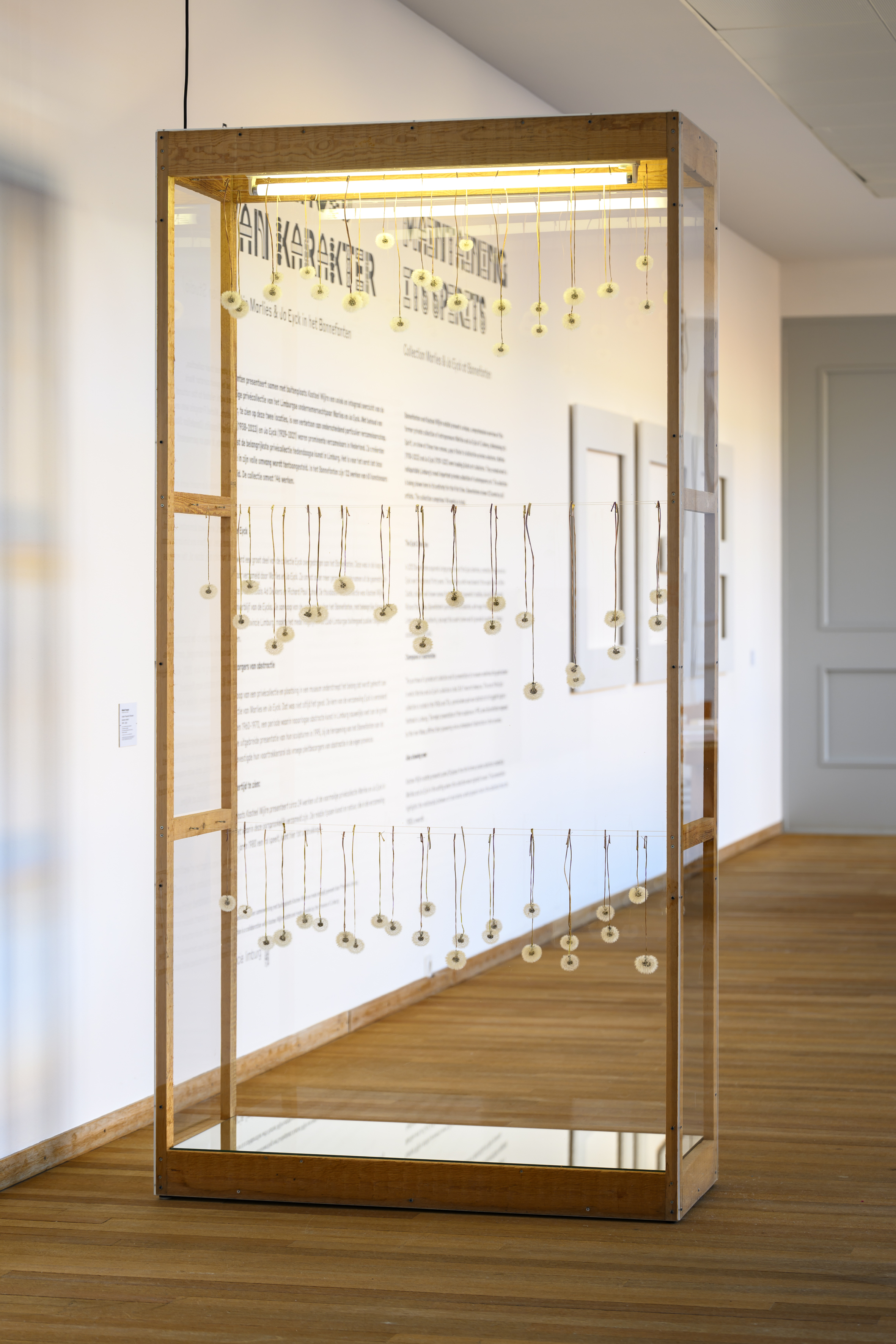 Materialen | hout, tl-verlichting, metaal, nylondraad, paardebloemen, plexiglas |