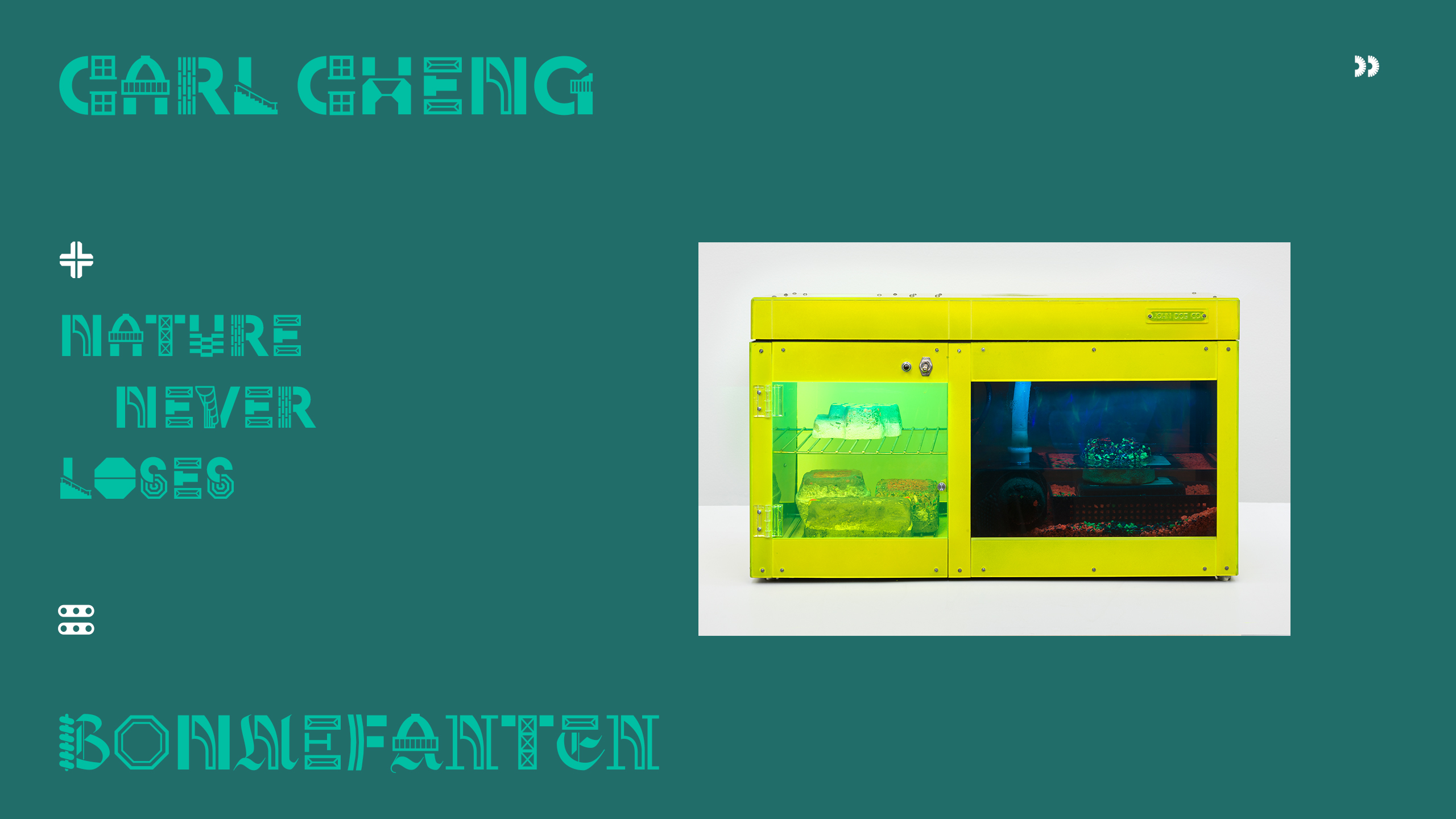 Nature Never Loses is de eerste grote solotentoonstelling van kunstenaar Carl Cheng (1942, San Francisco) in Europa.